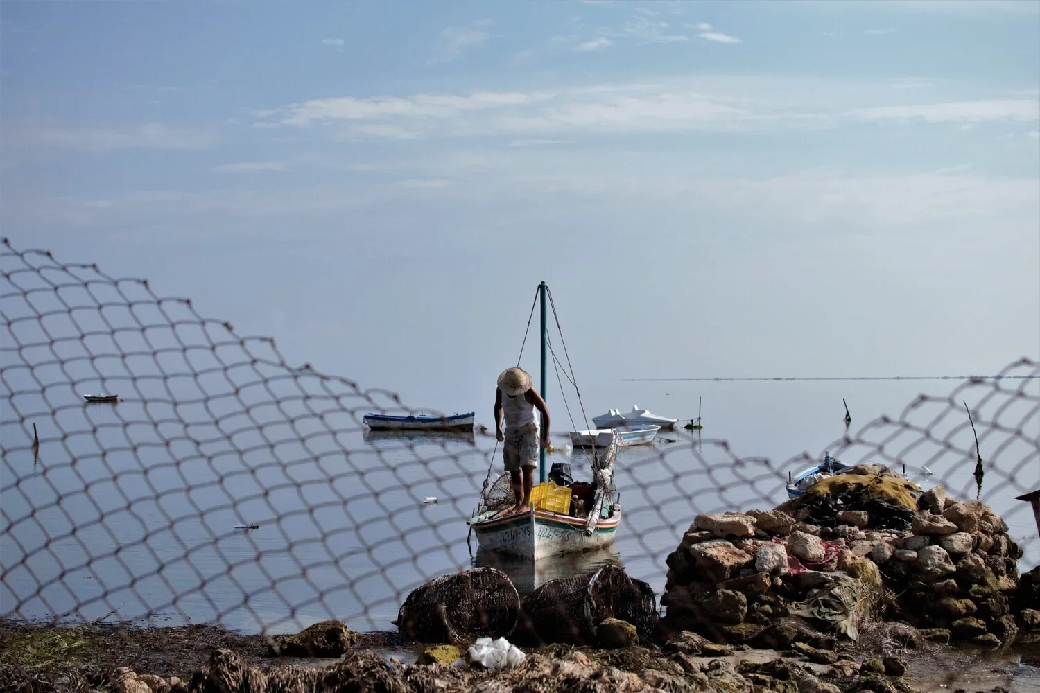 I once met a fisherman in Tunisia, for five minutes. He was retuning through the waveless sea in the morning. I began to take photos of him, and when he reached the shore, he approached me. Then, in his own, propheticly unintentional way, he proceeded to teach me one of the most important lessons in my life. Smiling, he flipped his hand-made basket to show me the small collection of tiny fish he had caught in the early morning, likely heading into the sea while the sky was still dark, departing slowly and unseen from a town deeply asleep.