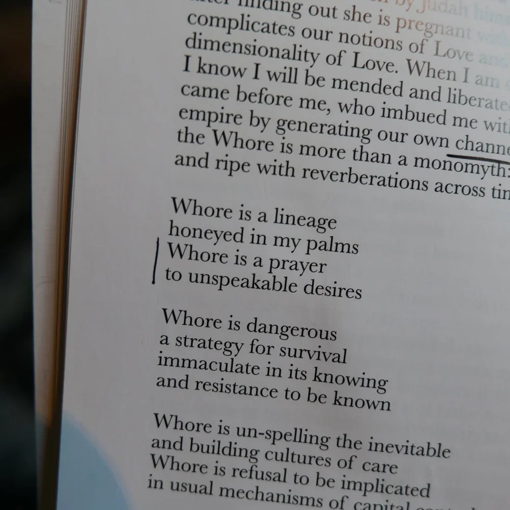 But perhaps ‘whore’ is a term that contains within it the highest compliment, if a woman has it in her to open it all the way up and understand what it contains. So here it is, let’s enter this word together!